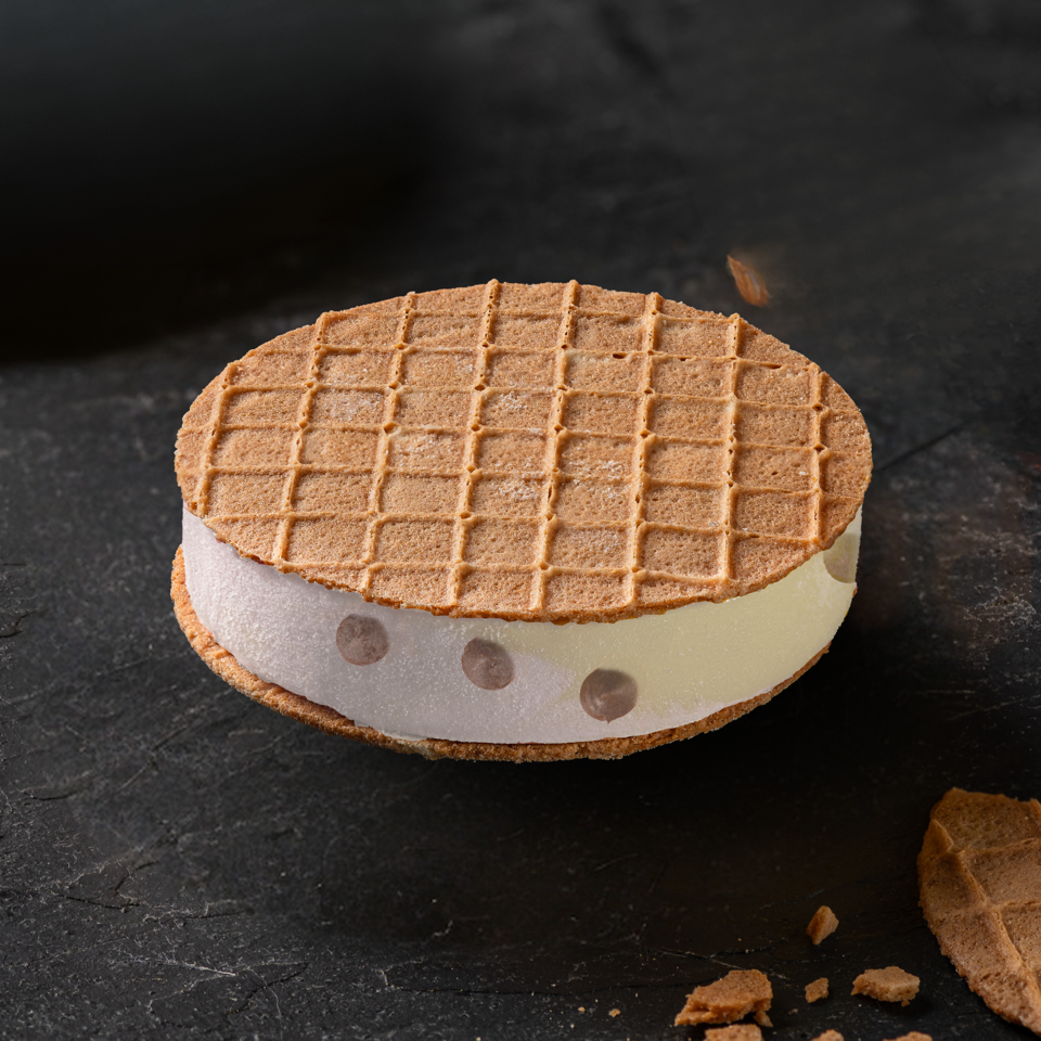 Vanilla ice cream with chewy cookie dough and chocolate chips nestled between two crunchy waffle biscuits. A dreamy fusion of real cookie dough, premium chocolate, and velvety ice cream. Real chocolate, real cookie dough, real milk, real cream. And only 150 calories.