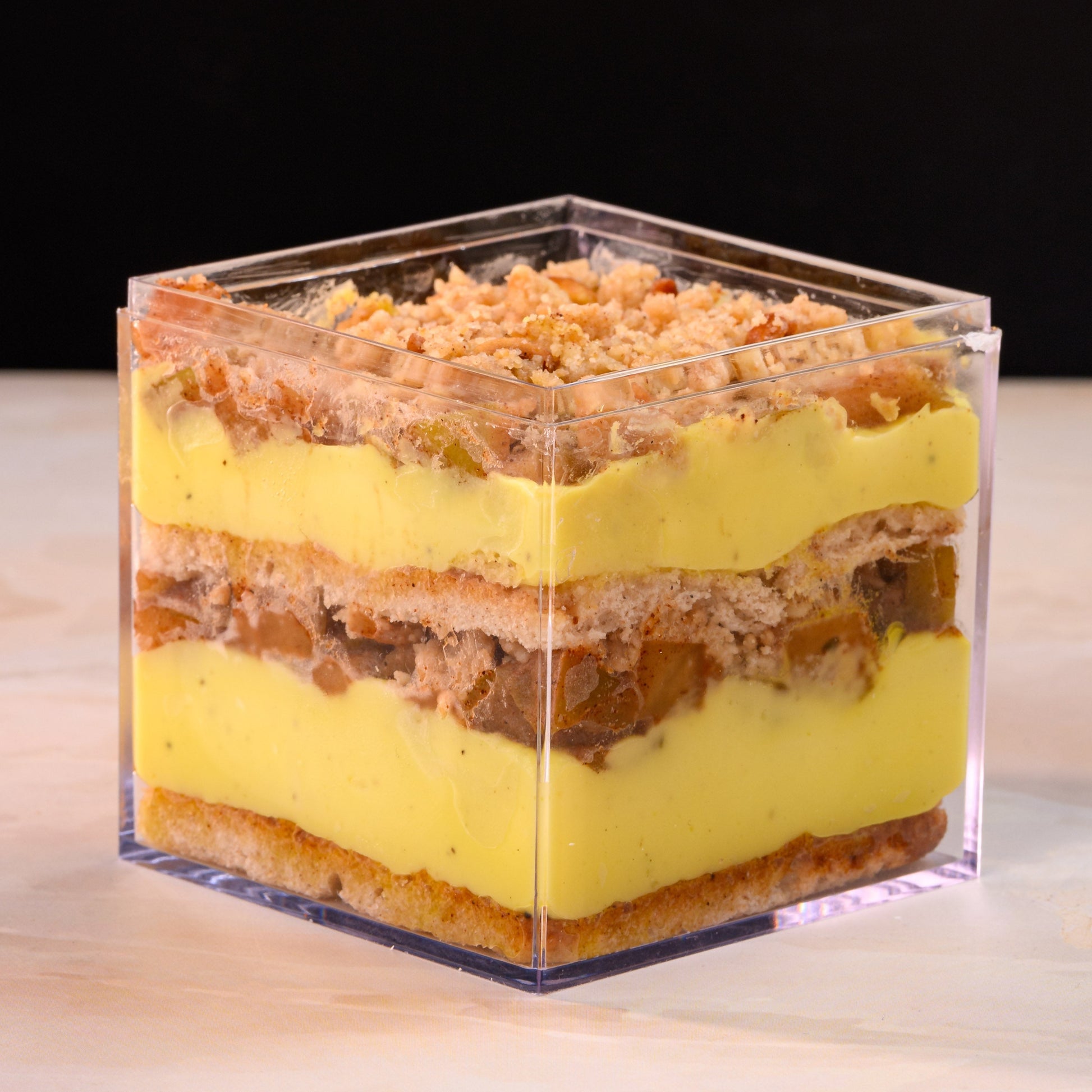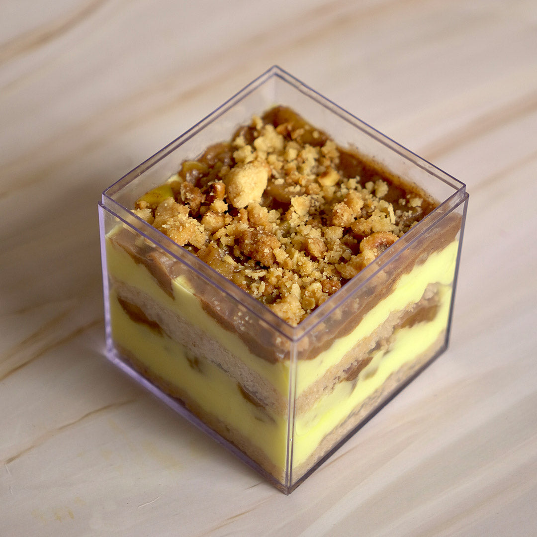 Green Apples, Nutmeg, Vanilla Spiced Cake, Cinnamon, Ginger, Vanilla Custard, Hazelnut, Oats, Butter, Lemon, Cornflour, Cream, Brown Sugar